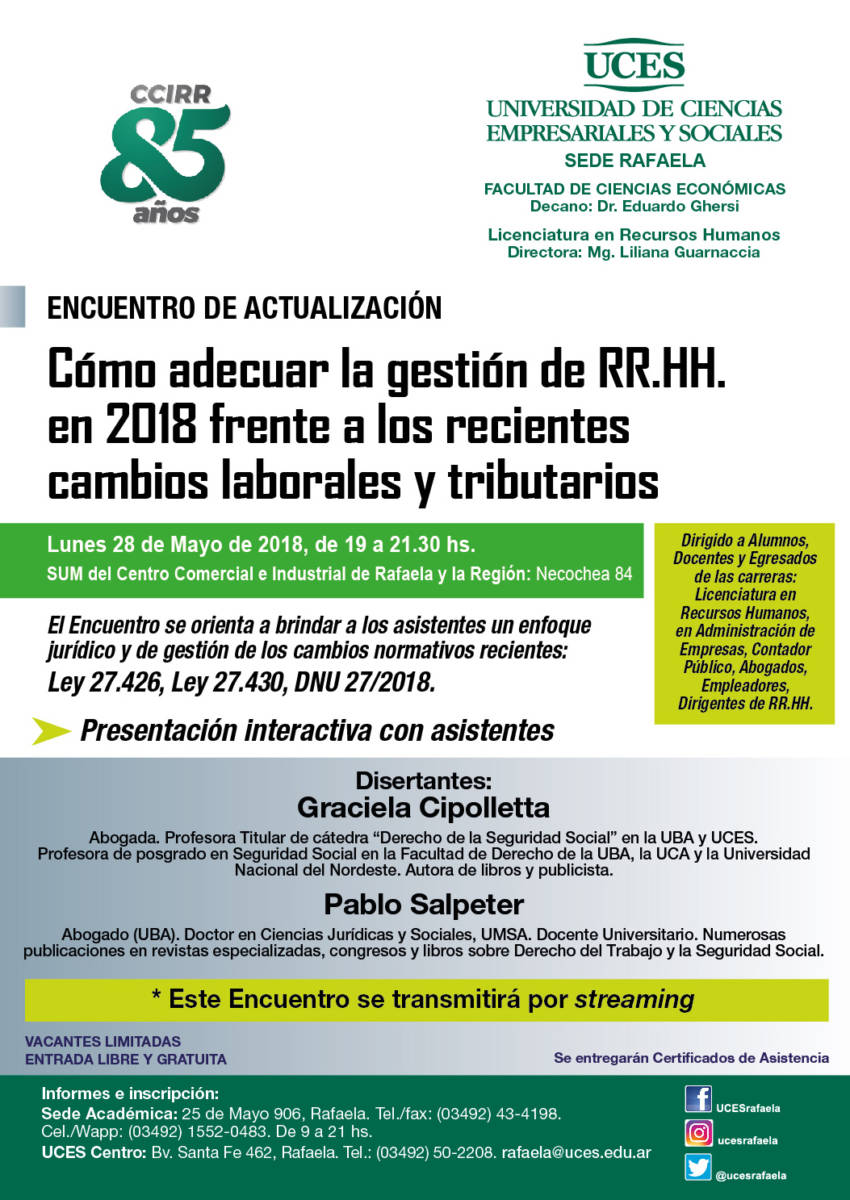 Charla Cómo adecuar la gestión de RRHH en 2018 frente a los recientes cambios laborales y tributarios