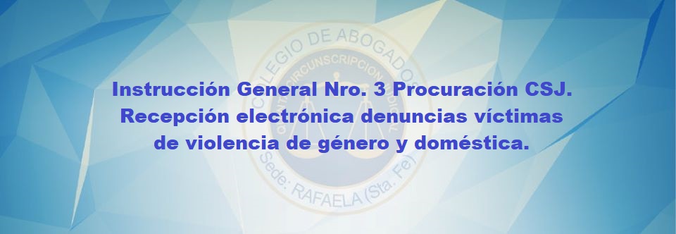Instrucción General N° 3 Procuración CSJ. Recepción electrónica denuncias víctimas de violencia de género y domestica – Colegio de Abogados