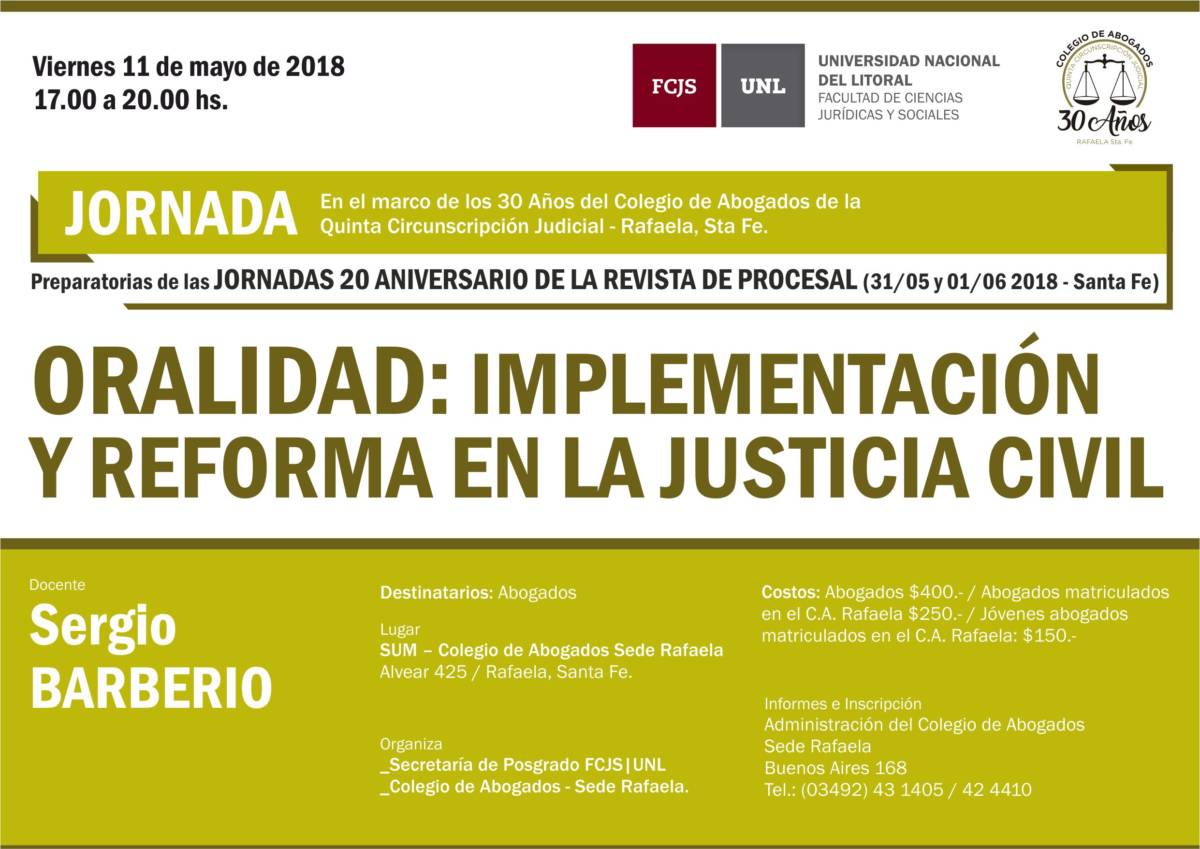 JORNADA “ORALIDAD: Implementación y reforma en la Justicia Civil” prevista para el día viernes 11/05