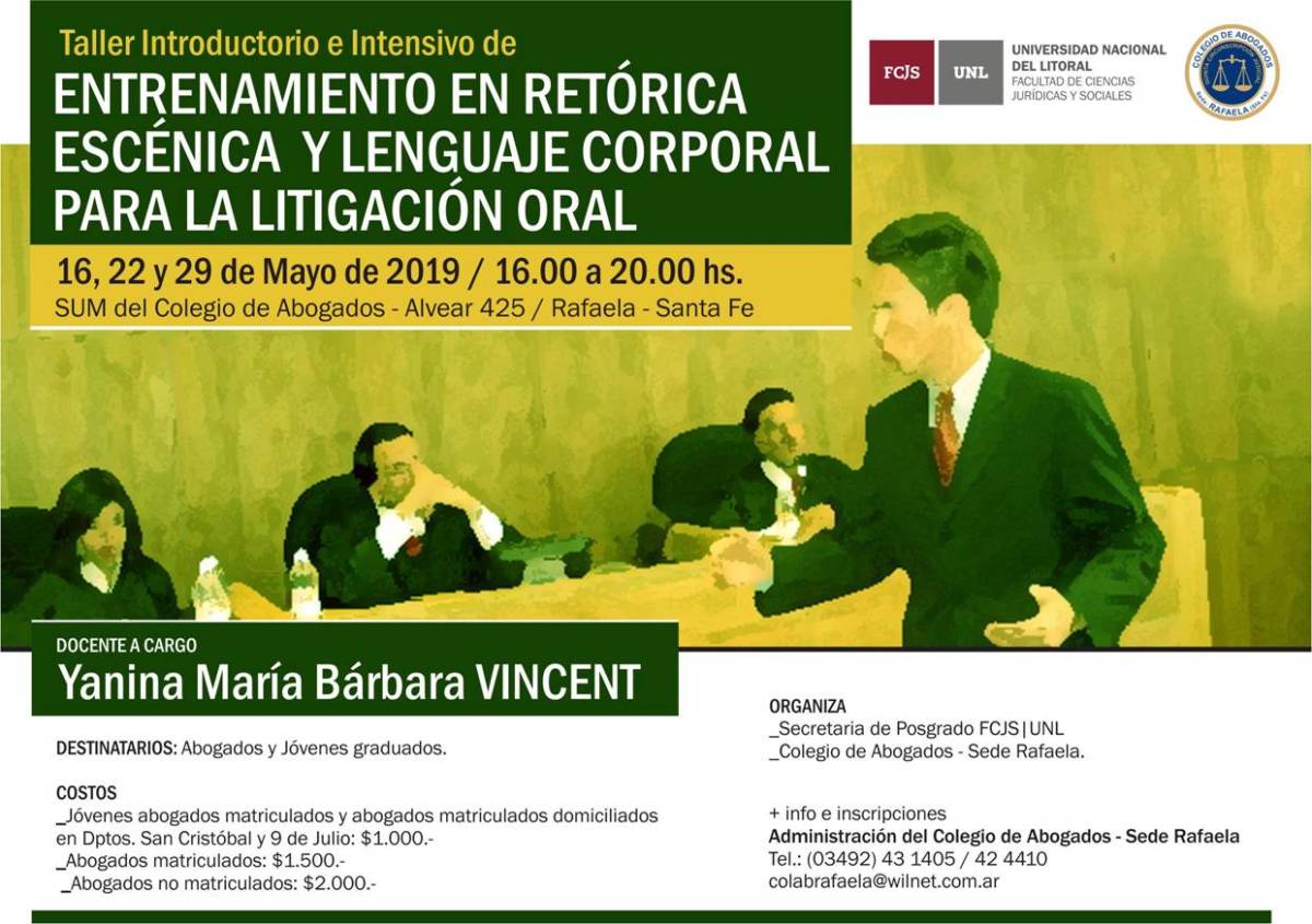 LITIGACIÓN ORAL* TALLER * CUPOS LIMITADOS – SUM, 16 – 22 y 29 de Mayo de 2019.