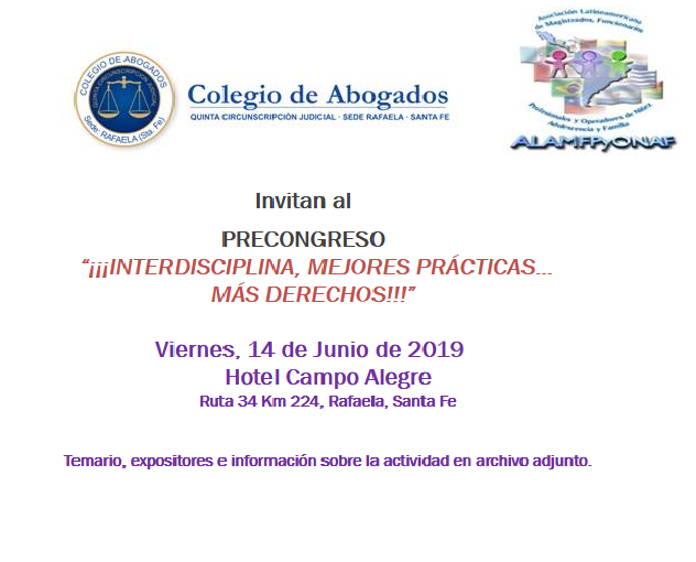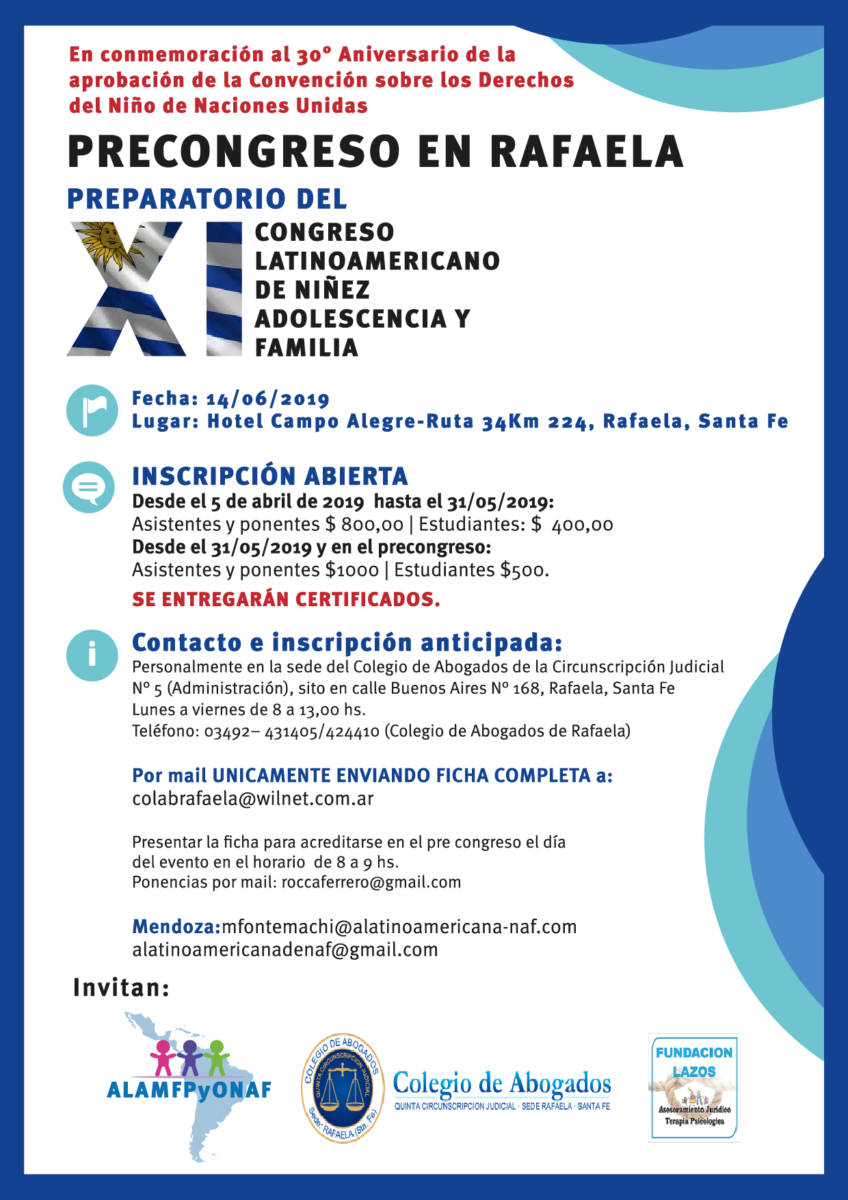 PRECONGRESO NIÑEZ, ADOLESCENCIA Y FAMILIA. Rafaela, 14 de junio de 2019.