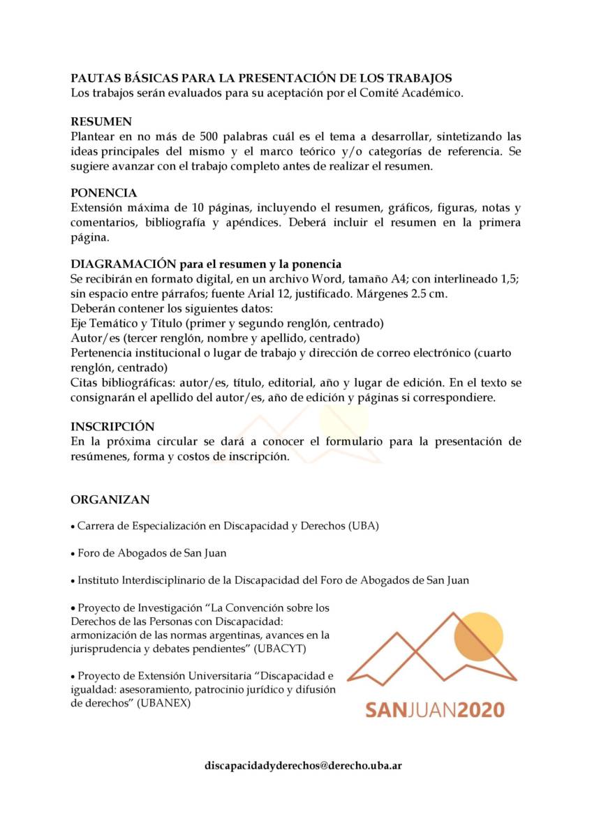Este evento académico se desarrolla en el marco de la Carrera de Especialización en Discapacidad y Derechos de la Universidad de Buenos Aires. Se realiza anualmente en distintas ciudades del país, donde se dicta el Curso Intensivo de Posgrado en Discapacidad y Derechos.