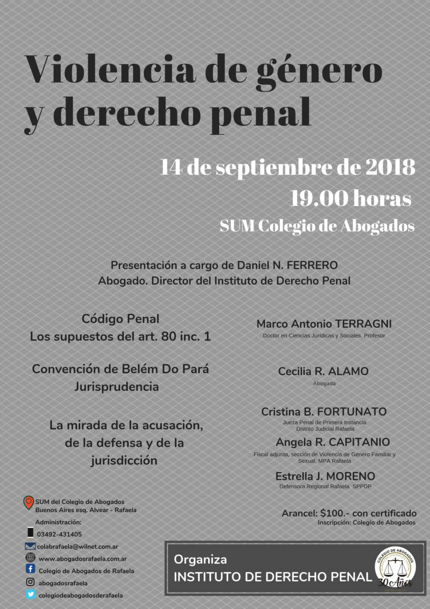 Violencia de género y derecho Penal. Sum del Colegio de Abogados, 14/09. Organiza: Instituto de Derecho Penal.